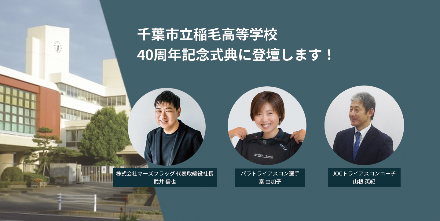 11月15日(金)に開催される千葉市立稲毛高等学校 40周年記念式典に、当社 武井、ならびに、パラトライアスロン 秦 由加子選手、JOCトライアスロン代表選手団コーチ 山根 英紀さんが登壇します。